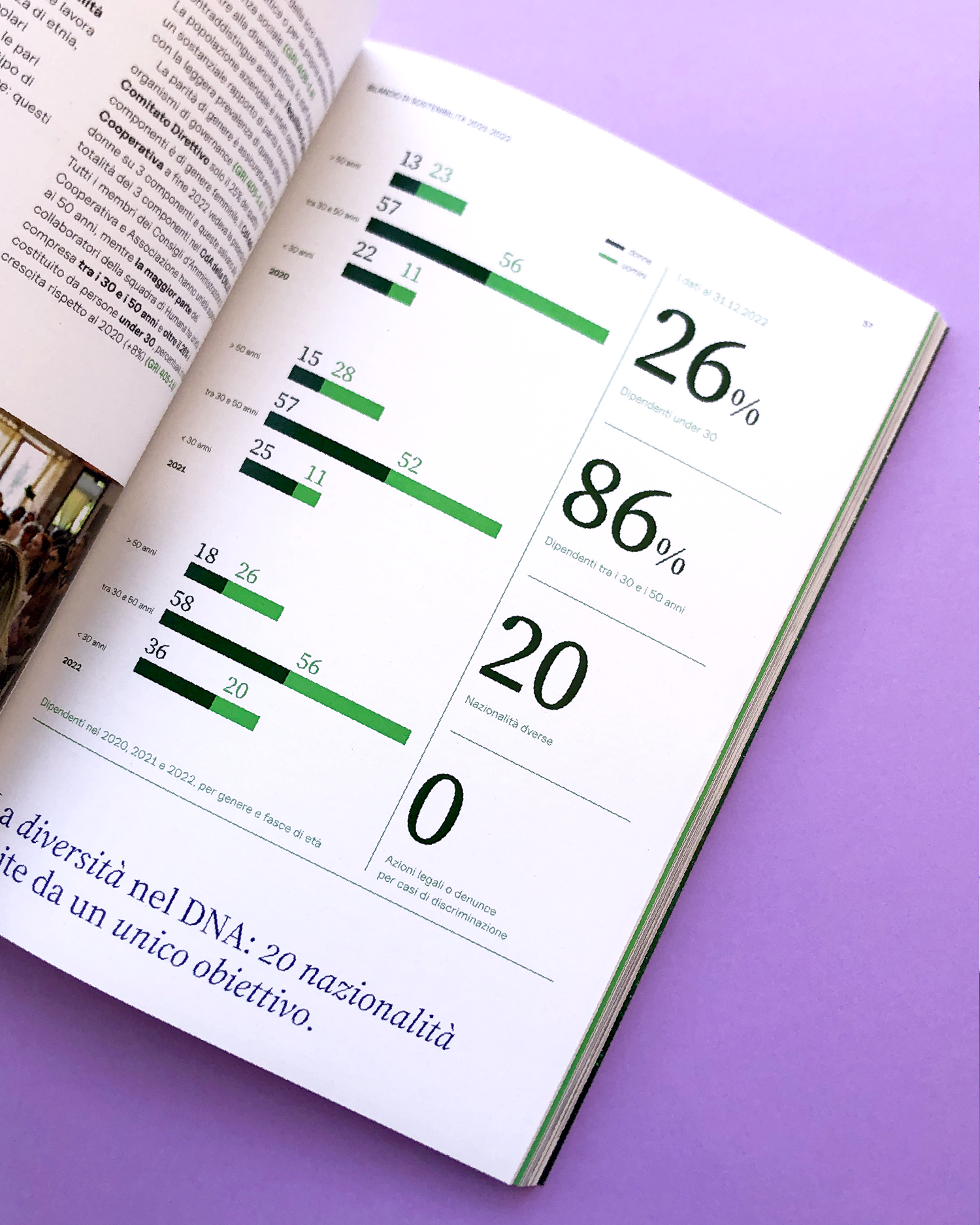 Inoltre ho disegnato un sistema di infografiche per la rappresentazione visiva di dati complessi, che in questo modo risultano più immediati da leggere e memorizzare. Infine ho curato l'impaginazione del documento completo.