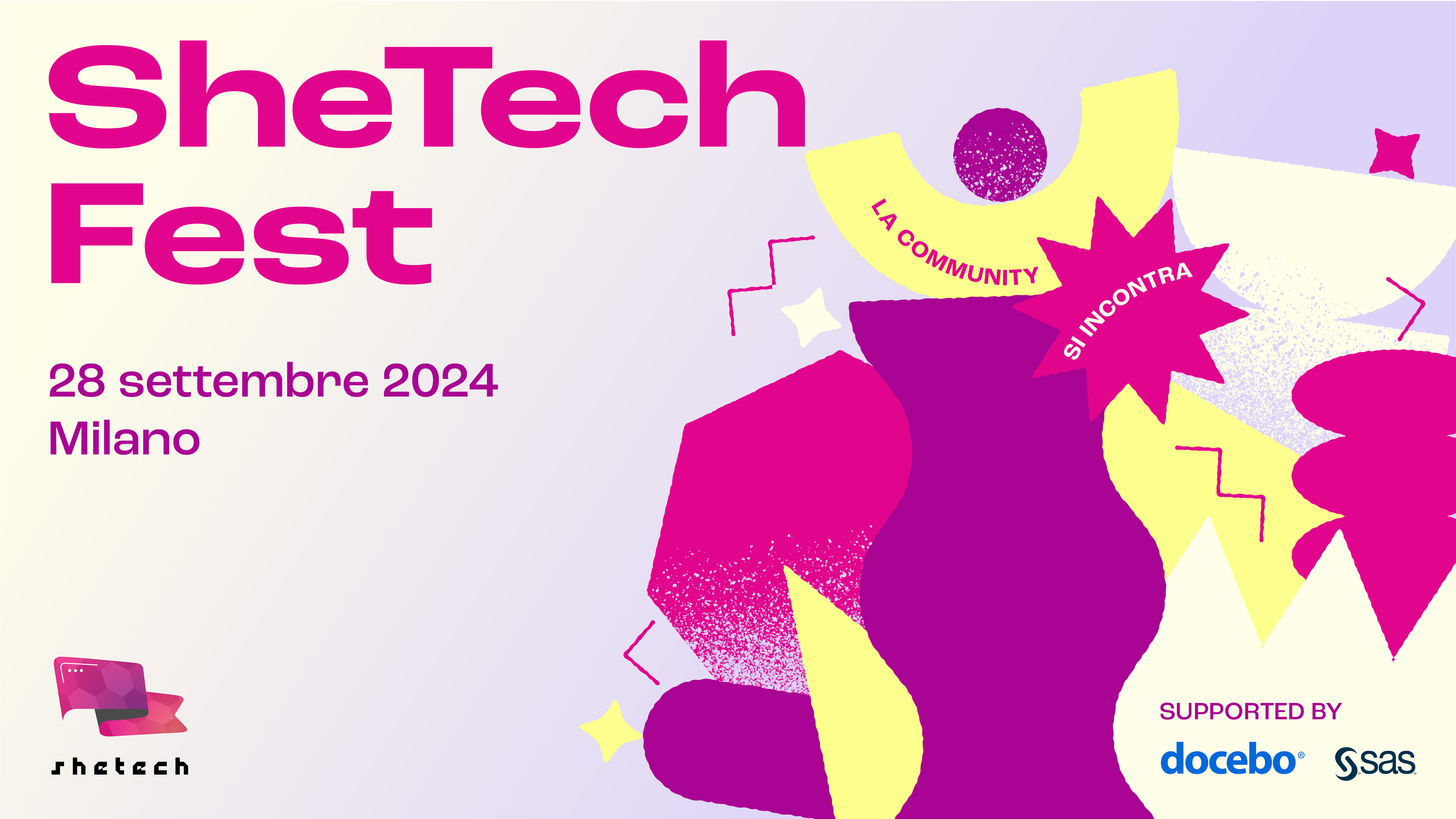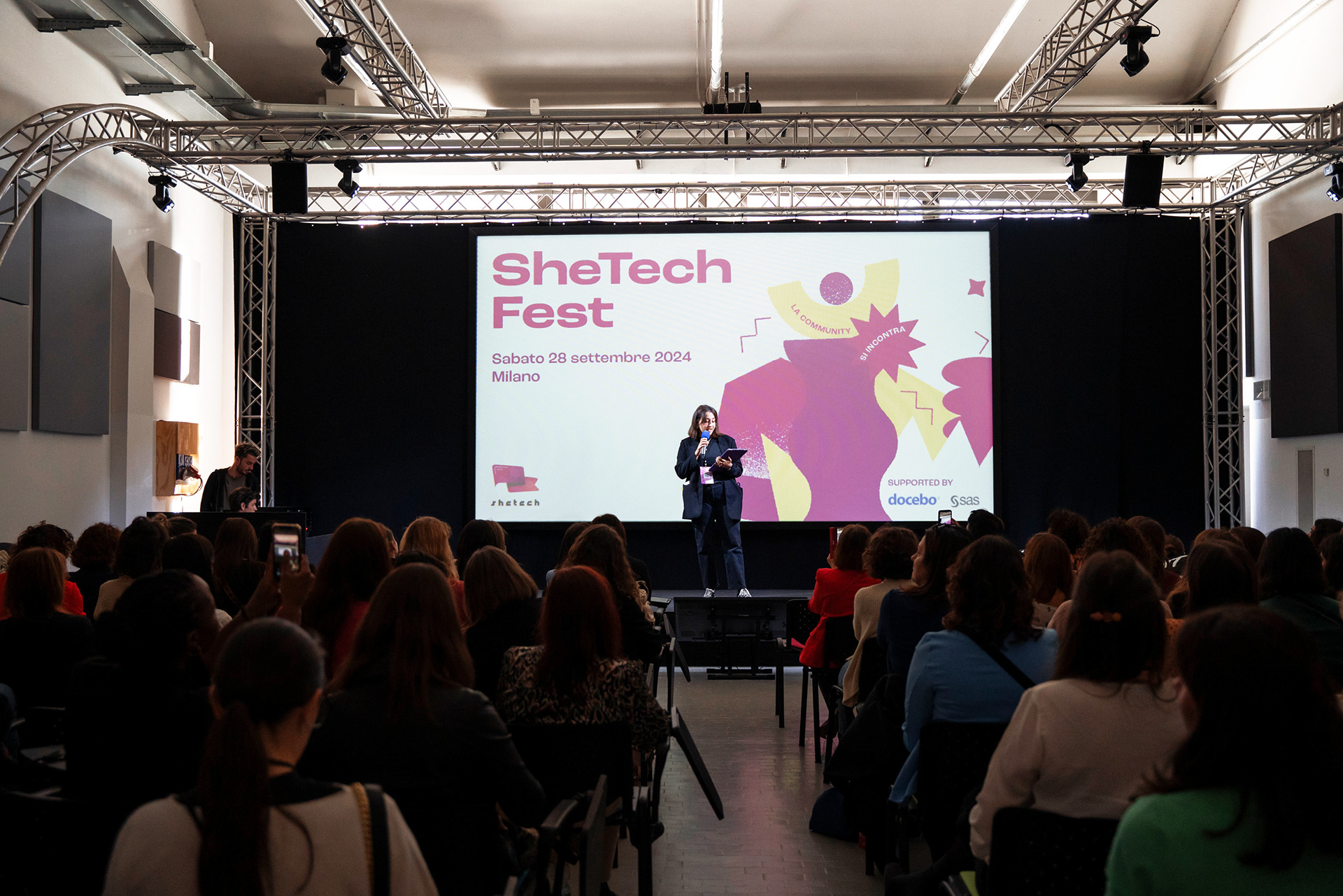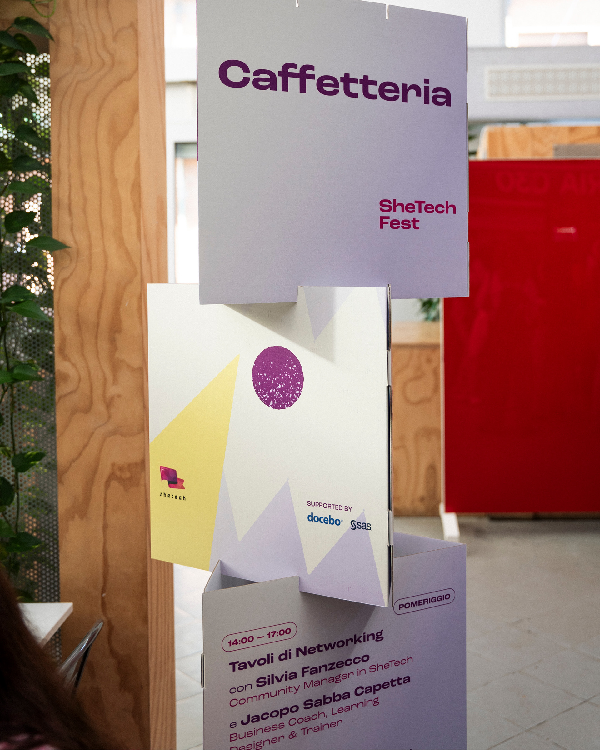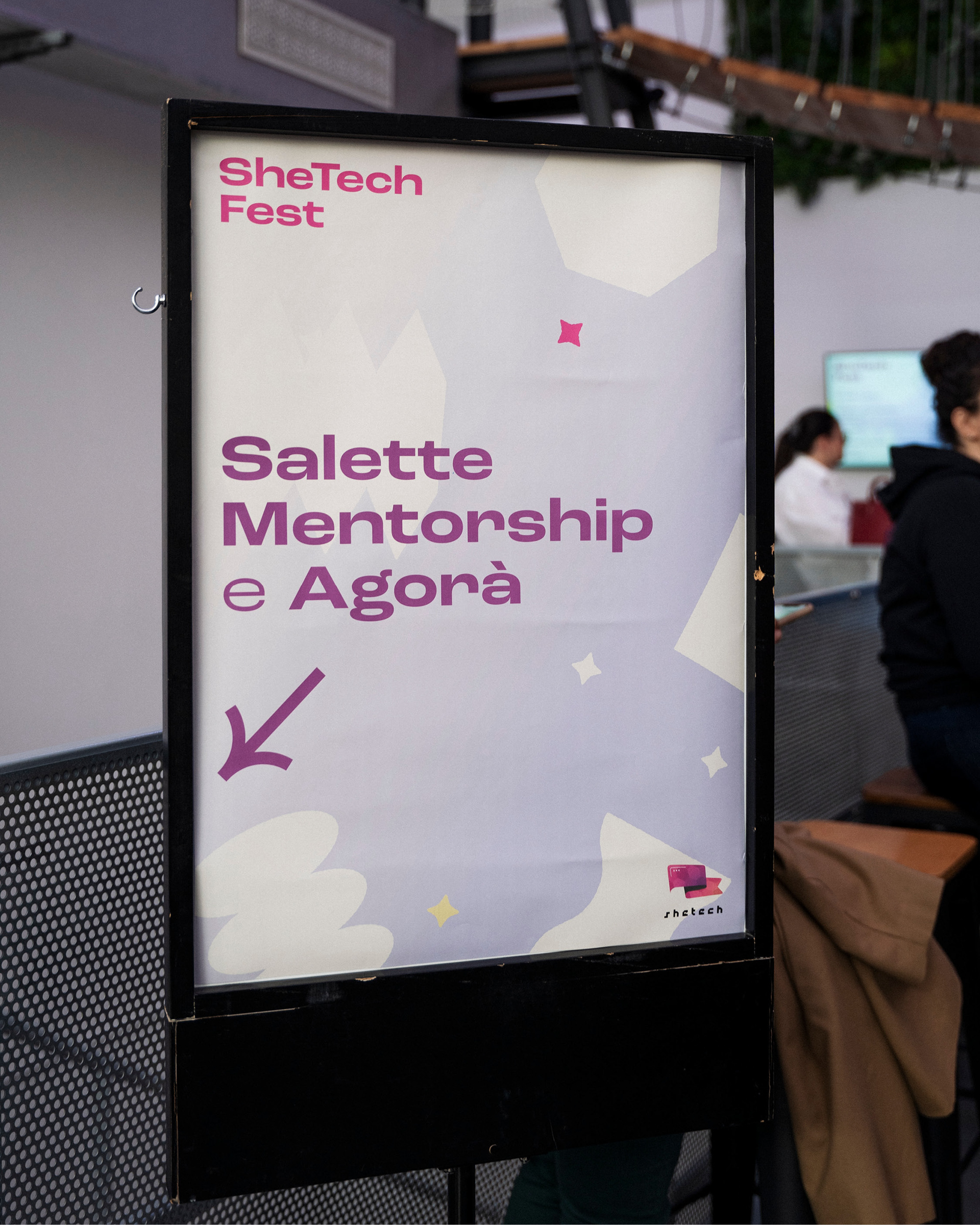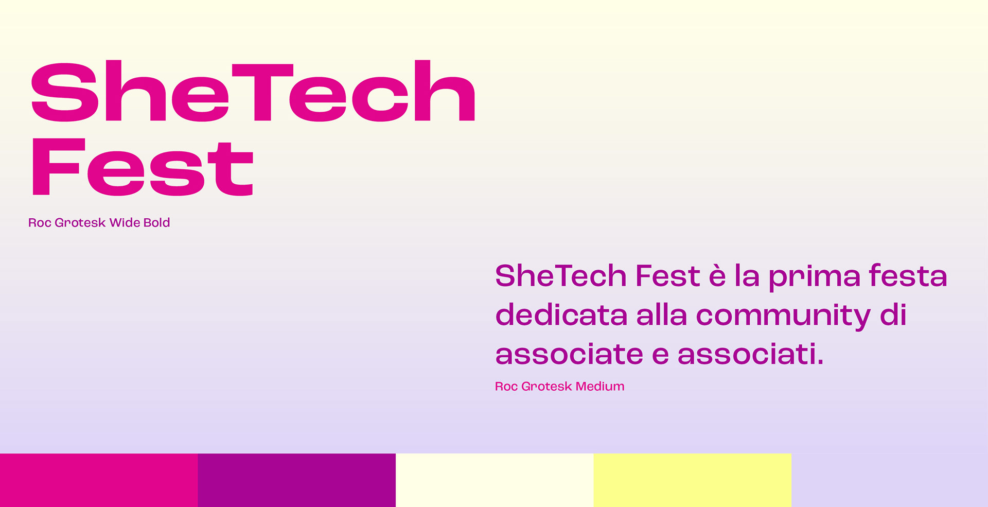 È nata così un’identità visiva sviluppata rispondendo alle necessità specifiche di una community straordinaria. SheTech ha come obiettivo quello di portare la parità di genere nei settori tech, digital e STEM. Tra le varie attività di formazione e networking, gli eventi dal vivo (e in particolare l’annuale SheTech Fest) sono di vitale importanza.